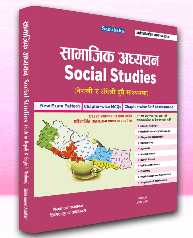 This 'Social Studies' book is primarily based on the revised curriculum for various three-year diploma programs in health sciences conducted by the Council for Technical Education and Vocational Training (CTEVT). These programs include General Medicine, Medical Lab Technology, Diagnostic Radiography, Homeopathy, Ayurveda, Amchi Medicine, Dental Science, Ophthalmic Science, Pharmacy, Physiotherapy, Acupuncture, and Acupressure & Moxibustion. Although it is designed in alignment with these courses, the scope of social studies has broadened over time. In this context, it will be useful for anyone seeking knowledge about Nepal.