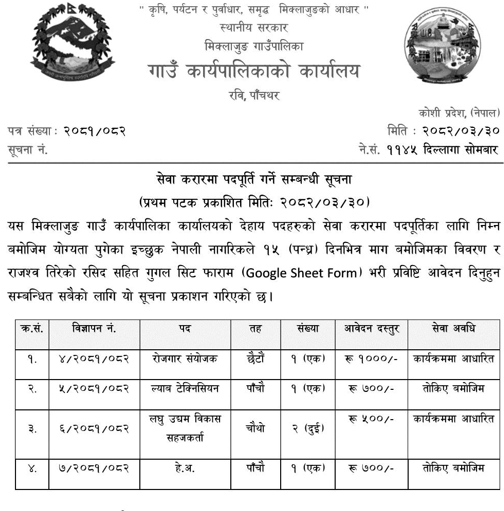मिक्लाजुङ गाउँपालिकामा कर्मचारी आवश्यकता सम्बन्धी सूचना