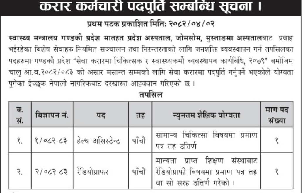 मुस्ताङ जिल्ला अस्पताल जोमसोममा कर्मचारी आवश्यकता सम्बन्धी सूचना