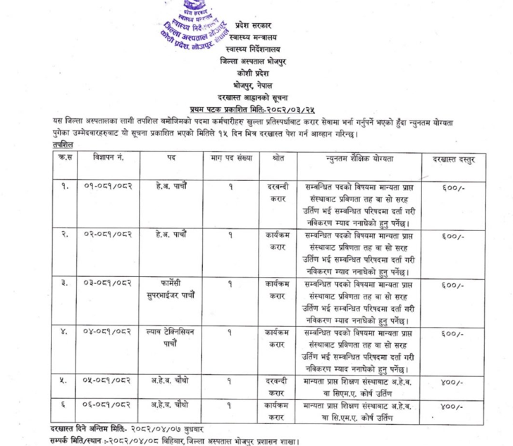 जिल्ला अस्पताल भोजपुरमा कर्मचारी आवश्यकता सम्बन्धी सूचना