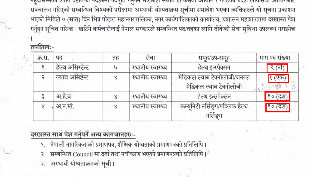 पोखरा महानगरपालिकामा स्वास्थ्यकर्मी आवश्यकता सम्बन्धी सूचना