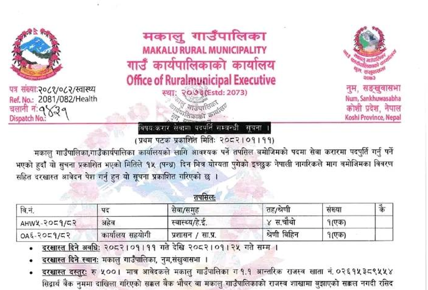 मकालु गाउँपालिकामा कर्मचारी आवश्यकता