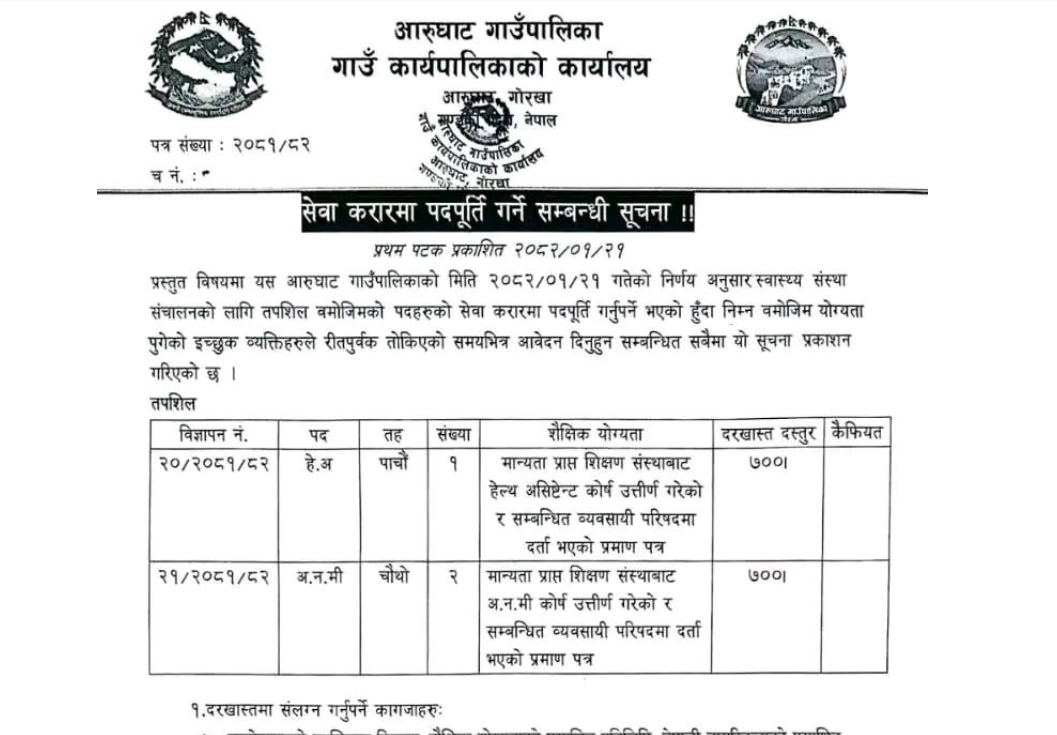 Aarughat Gaunpalika, Gorkha Vacancy for Various Positions