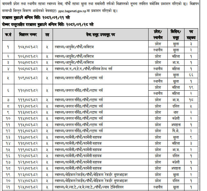 बागमती प्रदेश लोक सेवा आयोगको पाँचौ तहका प्राविधिक तथा अप्राविधिक पदहरुको विज्ञापन (२०८२-०१-०१)
