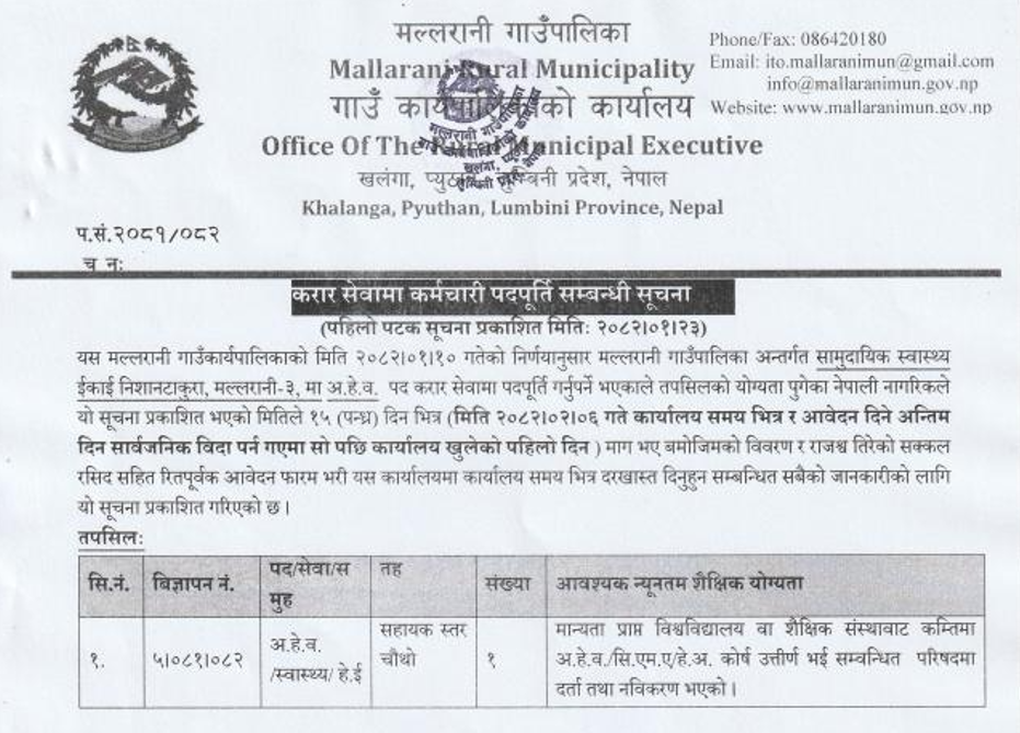 जैमिनी नगरपालिकामा कर्मचारी आवश्यकता सम्बन्धी सूचना