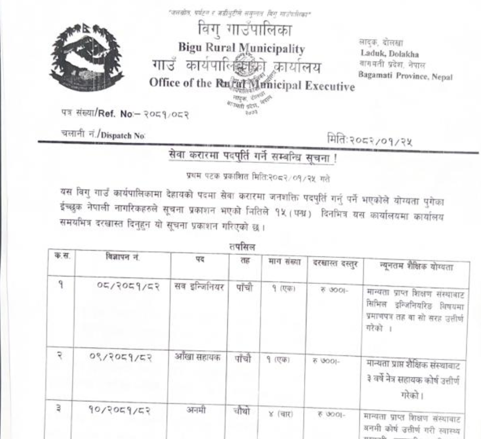 विगु गाउँपालिका दोलखामा कर्मचारी आवश्यकता