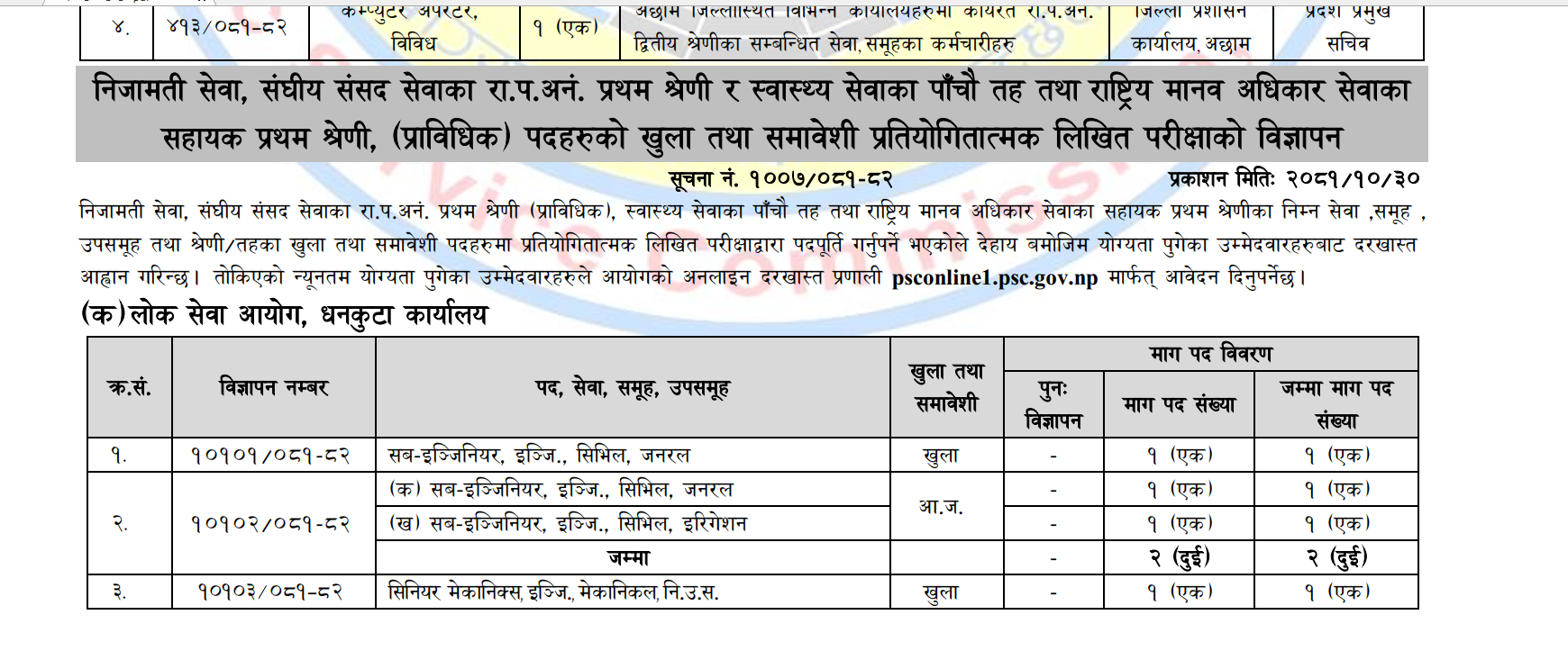केन्द्रीय लोक सेवा आयोगको पाँचौ तहको विज्ञापन (2081-10-30)