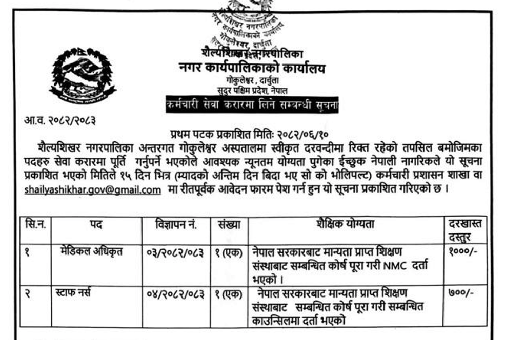शैल्यशिखर नगरपालिका दार्चुलामा कमचारी आवश्यकता