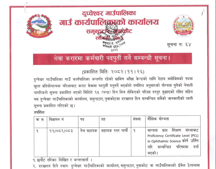 Dupcheshwor Rural Municipality Vacancies for Ophthalmic Assistant