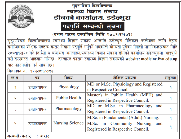 सु.प. विश्वविद्यालयमा उपप्रध्यापक आवश्यकता सम्बन्धी सूचना