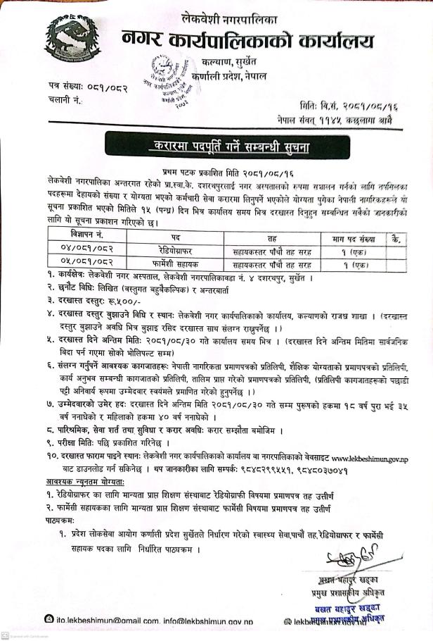 लेकबेशी नगरपालिका सुर्खेतमा कर्मचारी आवश्यकता सम्बन्धी सूचना