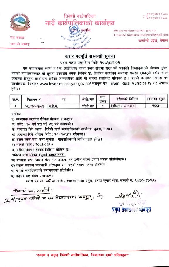 त्रिवेणी गाउँपालिका सल्यानमा अ.हे.व आवश्यकता