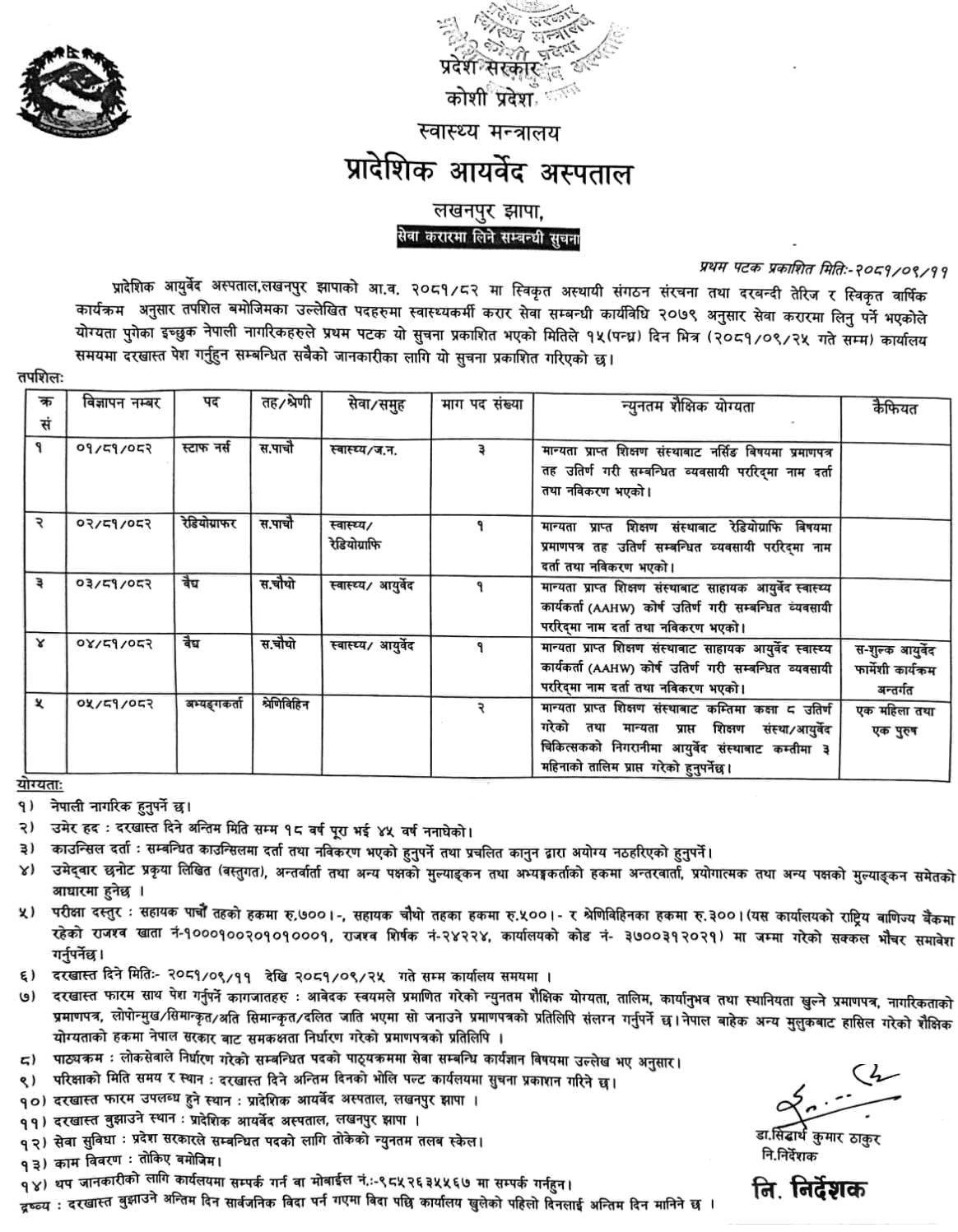 प्रदेश आयुर्वेद अस्पताल झापामा कर्मचारी आवश्यकता सम्बन्धी सूचना