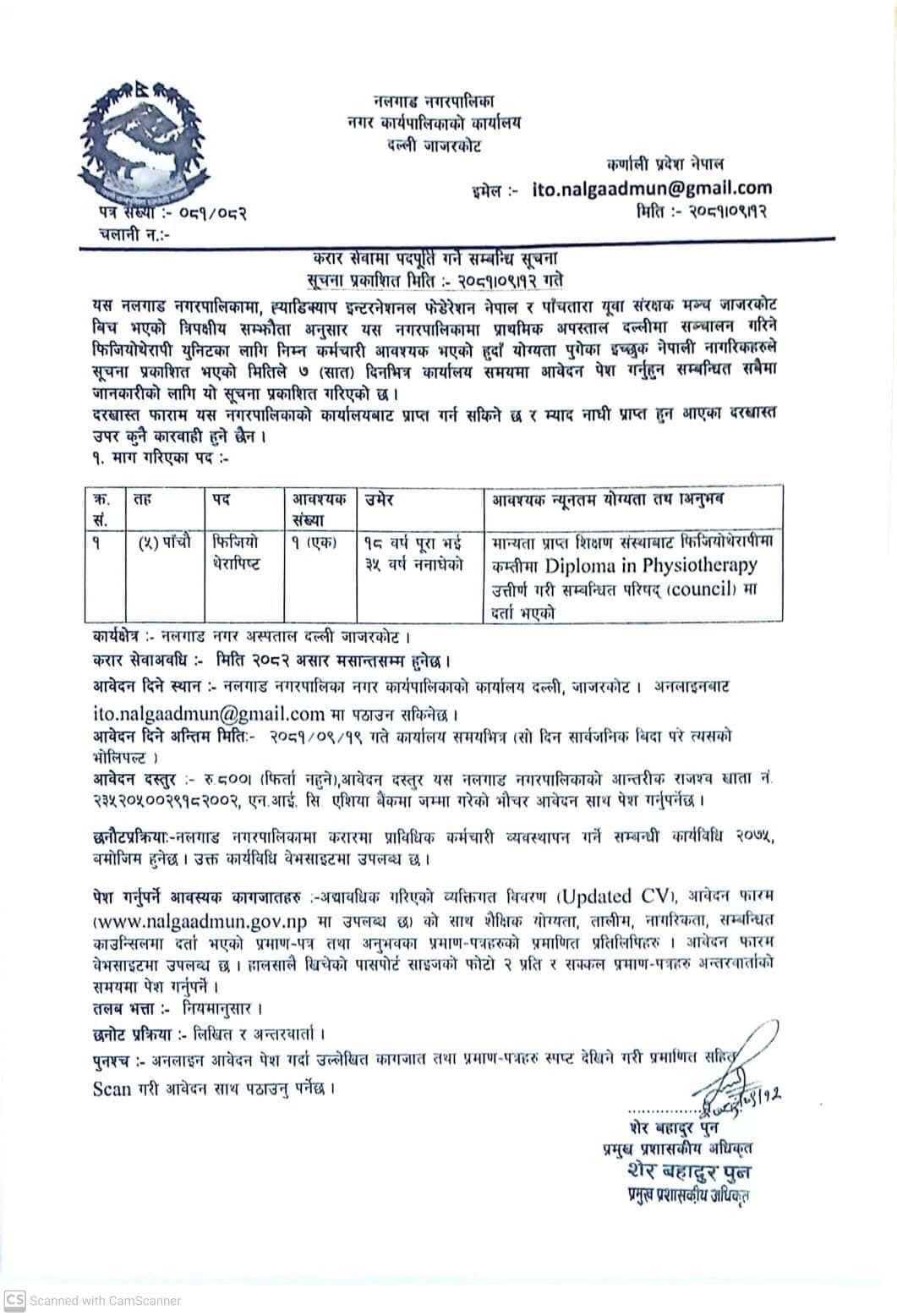 नलगाड नगरपालिकामा कर्मचारी आवश्यकता सम्बन्धी सूचना