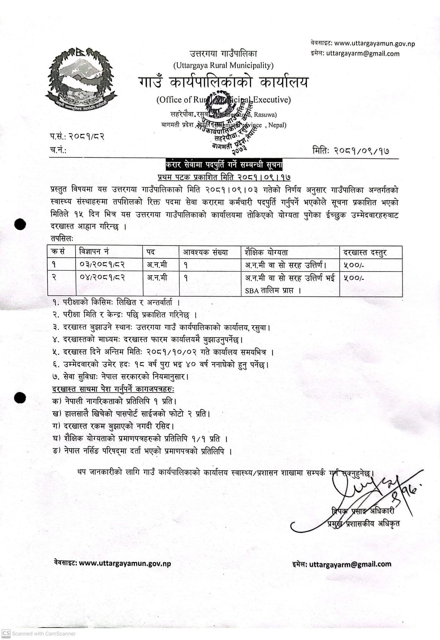 उत्तरगया गाउँपालिकामा अ.न.मी. आवश्यकता सम्बन्धी सूचना
