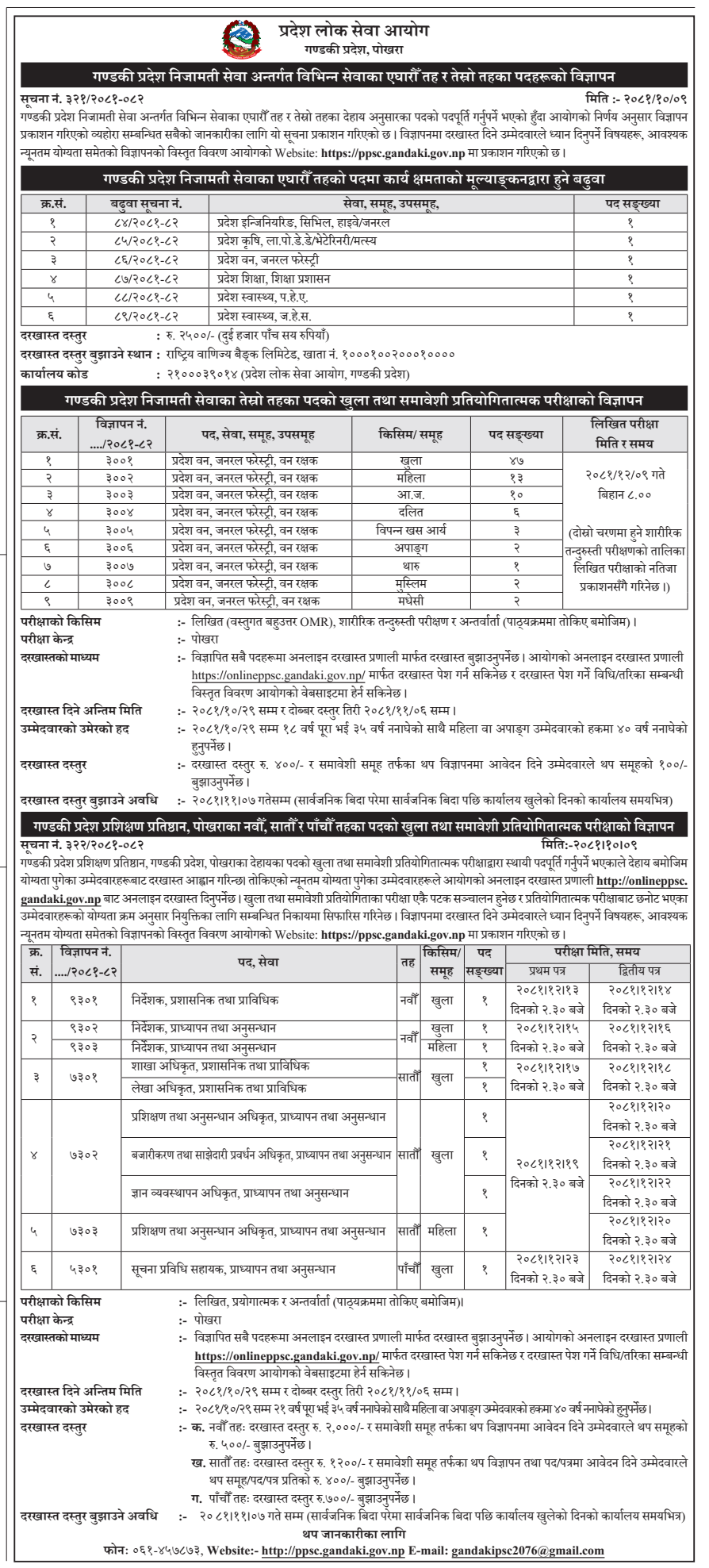 गण्डकी प्रदेश निजामती सेवा अन्तर्गत विभिन्न सेवाका एघारौं तह र तेस्रो तहका पदहरूको विज्ञापन
