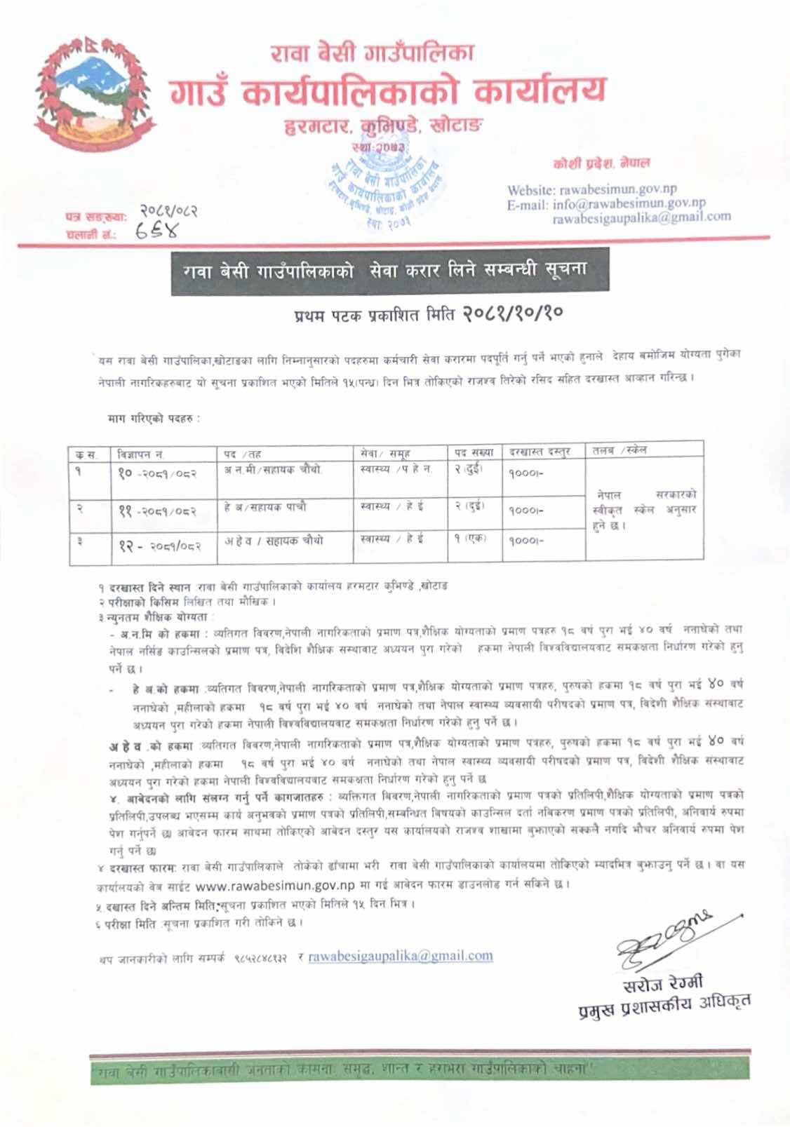 रावा बेसी गाउँपालिकामा कर्मचारी आवश्यकता सम्बन्धी सूचना
