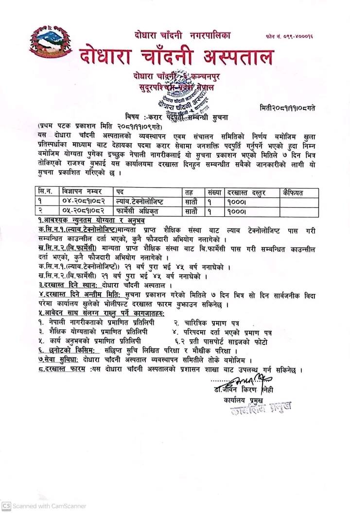 दोधारा चाँदनी अस्पतालमा कर्मचारी आवश्यकता