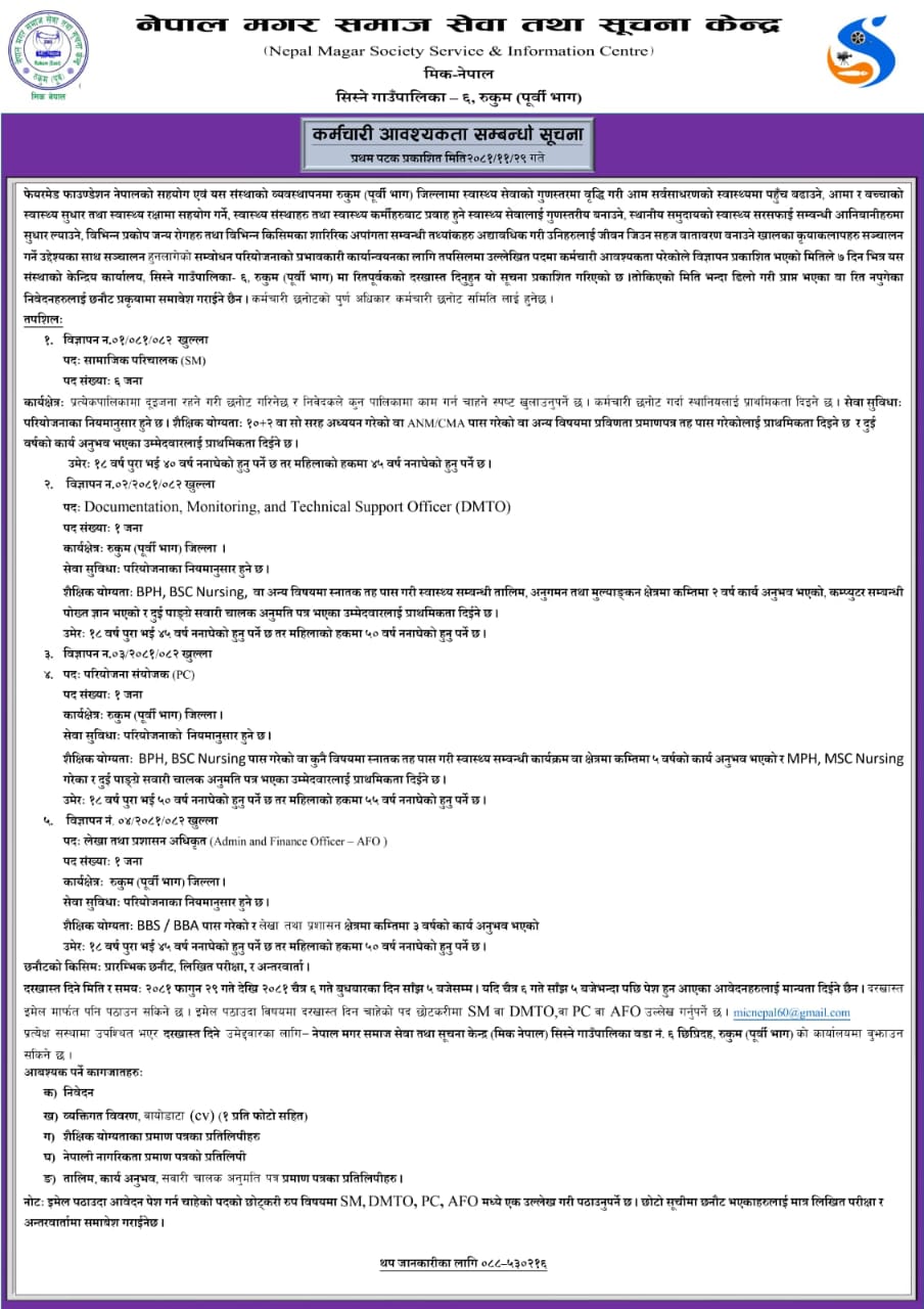 नेपाल मगर समाज सेवा तथा सूचना केन्द्रमा कर्मचारी आवश्यकता सम्बनधी सूचना