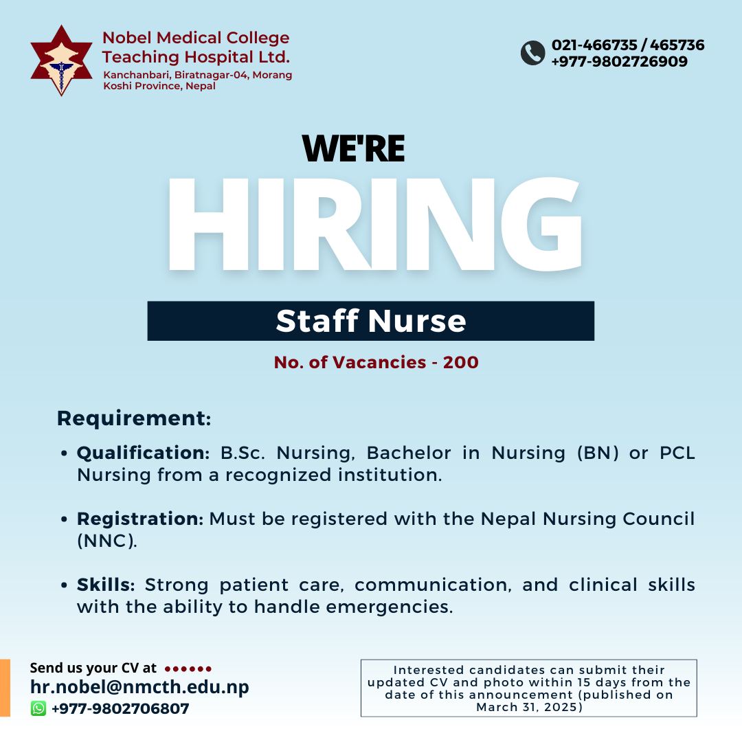 Nobel Medical College Hiring: 200 Staff Nurse Vacancies