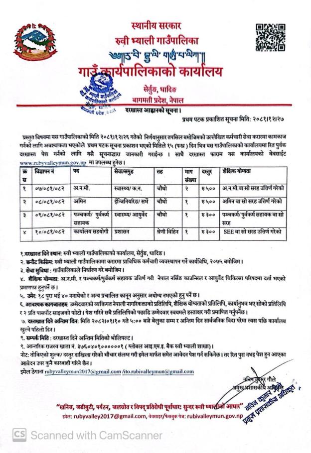 रुवी भ्याली गाउँपालिकामा कर्मचारी आवश्यकता