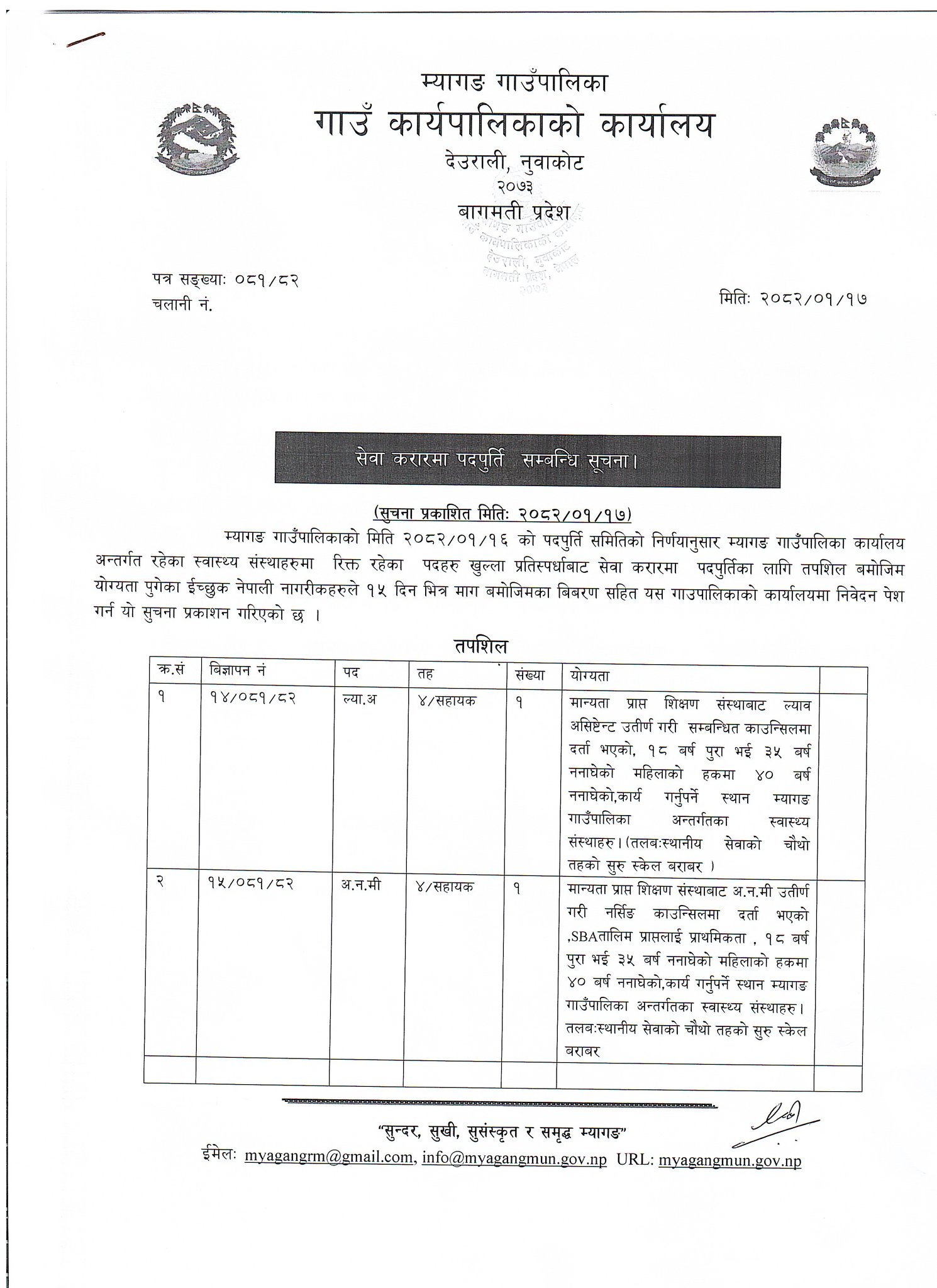 म्यागङ गाउँपालिकामा कर्मचारी आवश्यकता सम्बन्धी सूचना