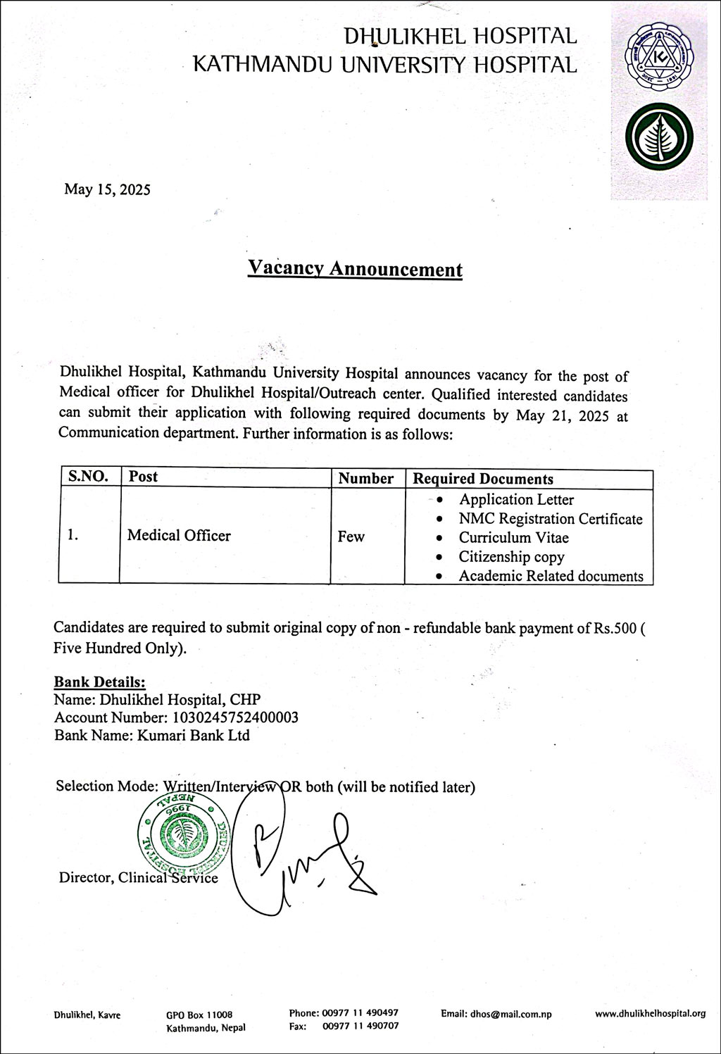 Vacancy Announcement for the Post of Medical Officer at Dhulikhel Hospital