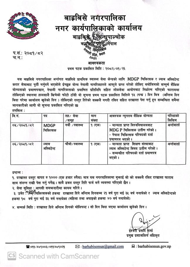 बाह्रविसे नगरपालिकामा कर्मचारी आवश्यकता सम्बन्धी सूचना
