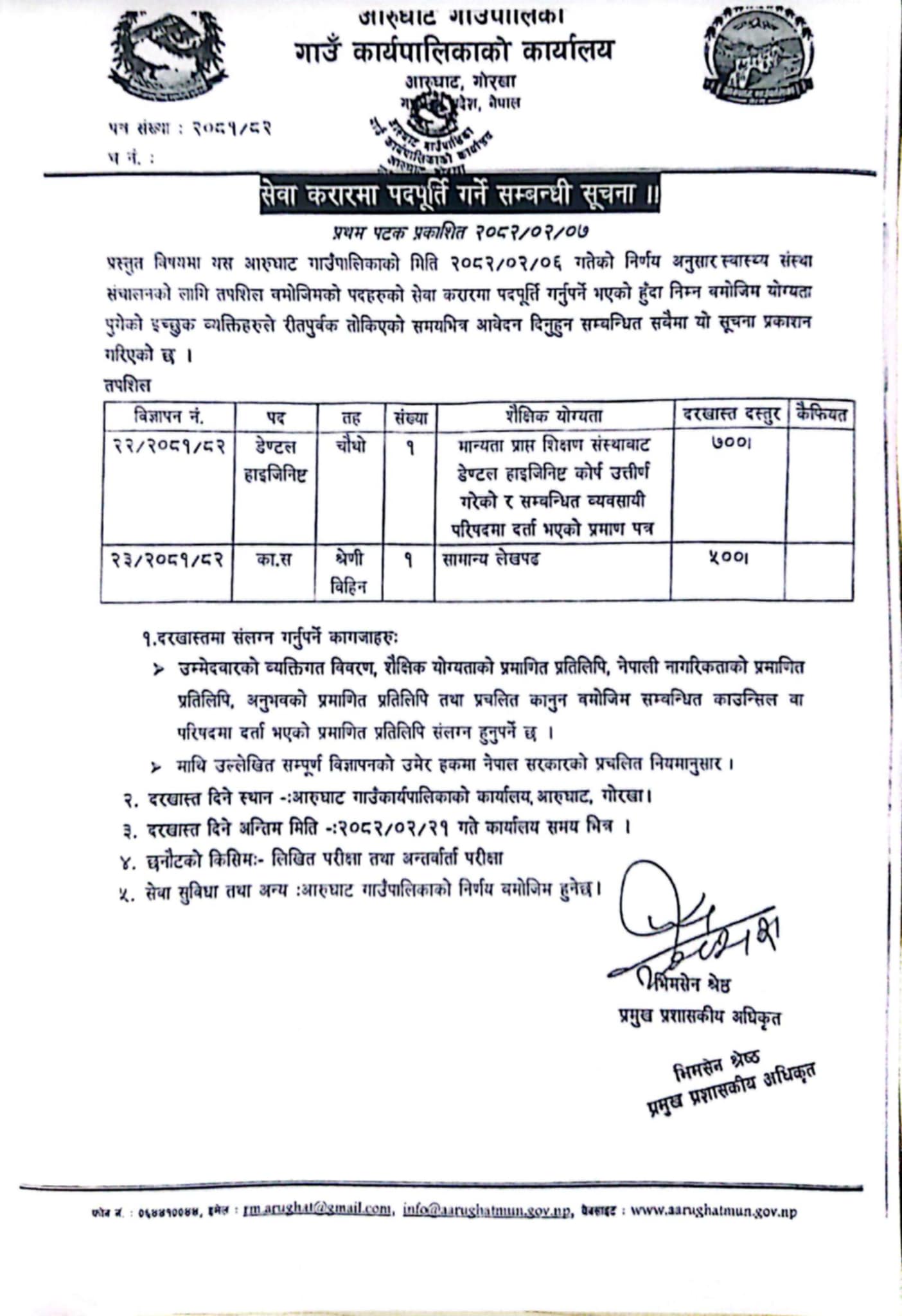 Arughat Rural Municipality Vacancy for Various Posts