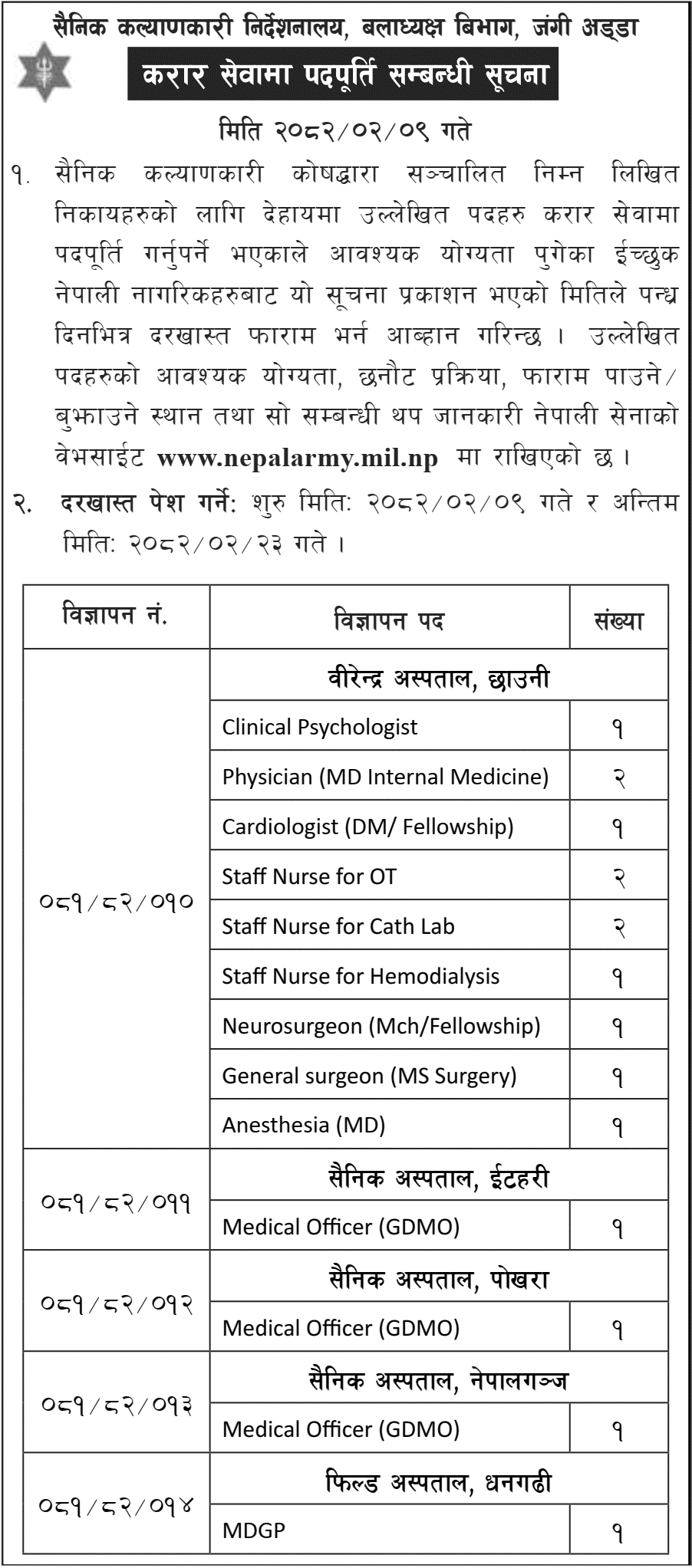 Contract-Based Recruitment Notice – Army Welfare Directorate