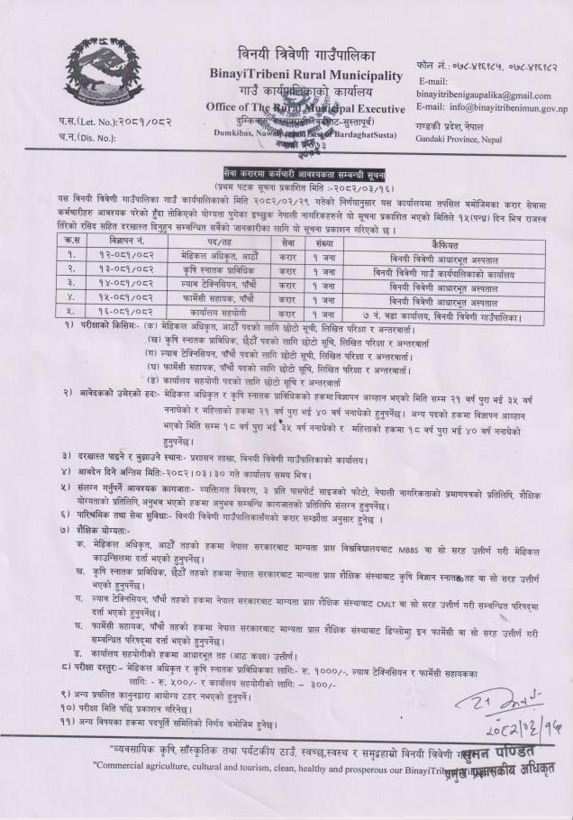 विनयी–त्रिवेणी गाउँपालिका नवलपरासीमा कर्मचारी आवश्यकता