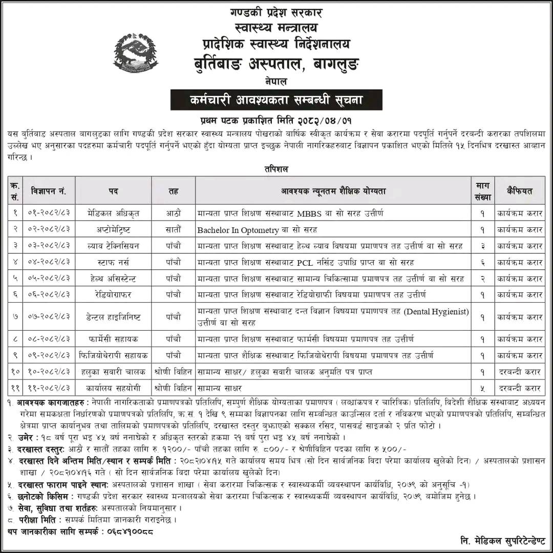 बुर्तिबाङ अस्पताल, बागलुङमा कर्मचारी आवश्यकता सम्बन्धी सूचना