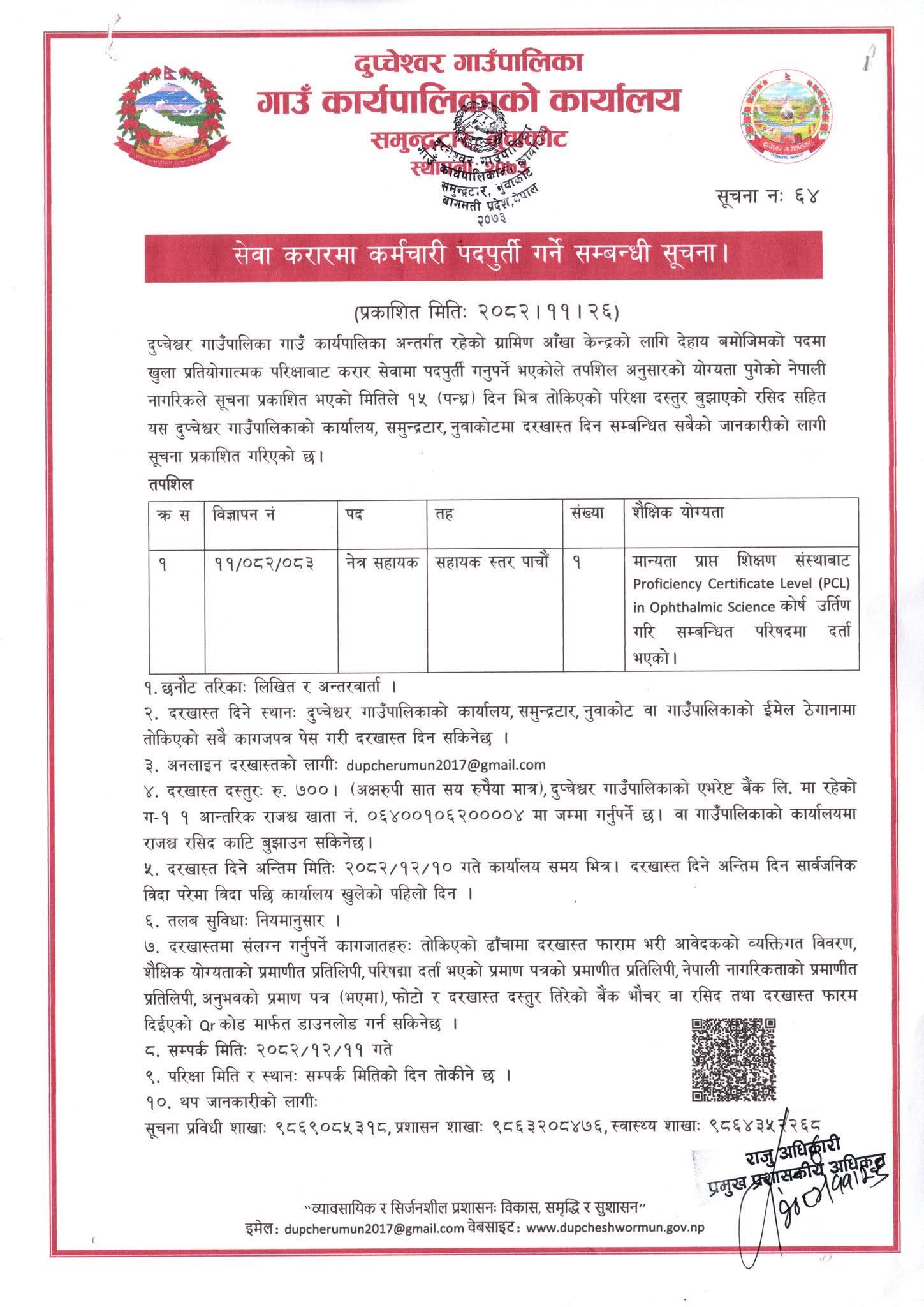 Dupcheshwor Rural Municipality Vacancies for Ophthalmic Assistant