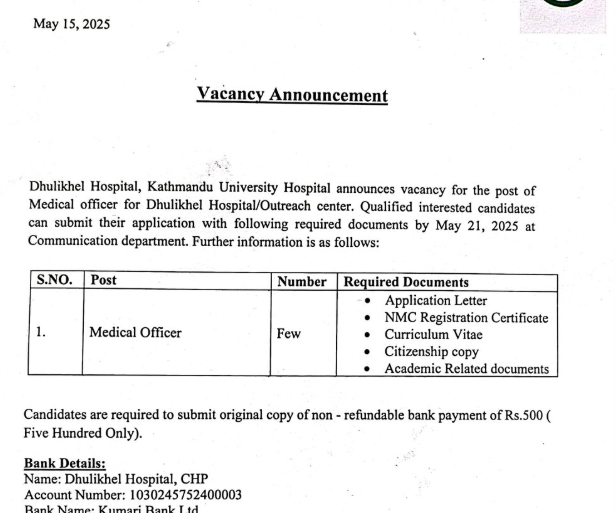 Vacancy Announcement for the Post of Medical Officer at Dhulikhel Hospital
