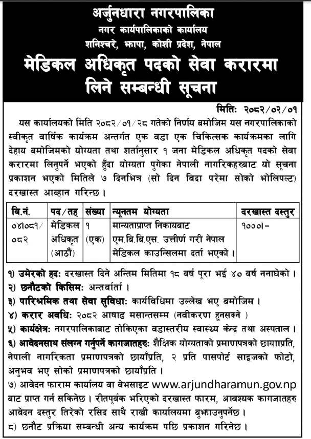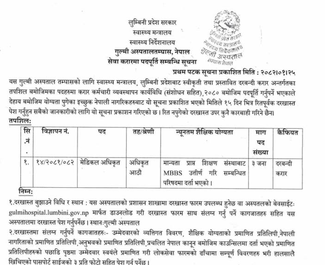 गुल्मी अस्पतालमा मेडिकल अधिकृत आवश्यकता सम्बन्धी सूचना
