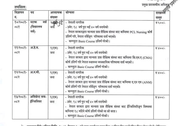 भोटेखोला गाउँपालिकामा कर्मचारी आवश्यकता सम्बन्धी सूचना
