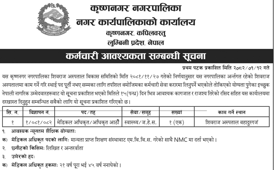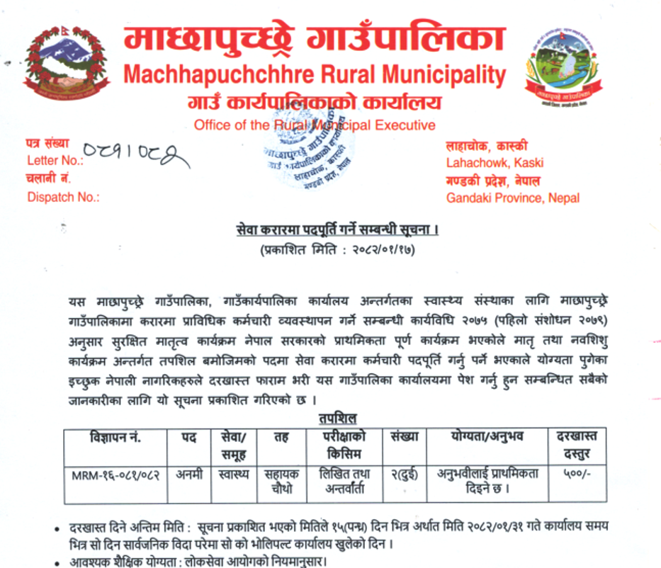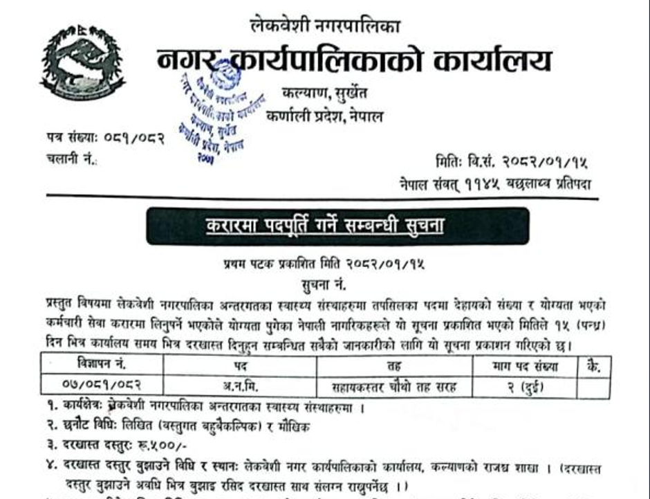 मंगलसेन नगरपालिका अछाममा कर्मचारी आवश्यकता सम्बन्धी सूचना
