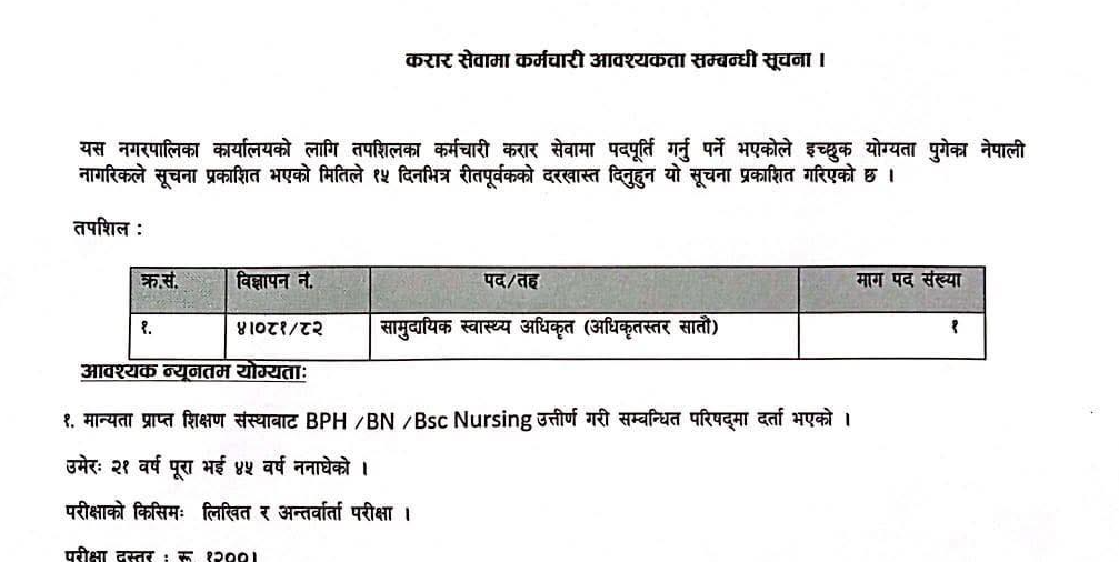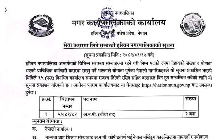 हरिवन नगरपालिकामा अ.न.मी. आवश्यकता सम्बन्धी सूचना