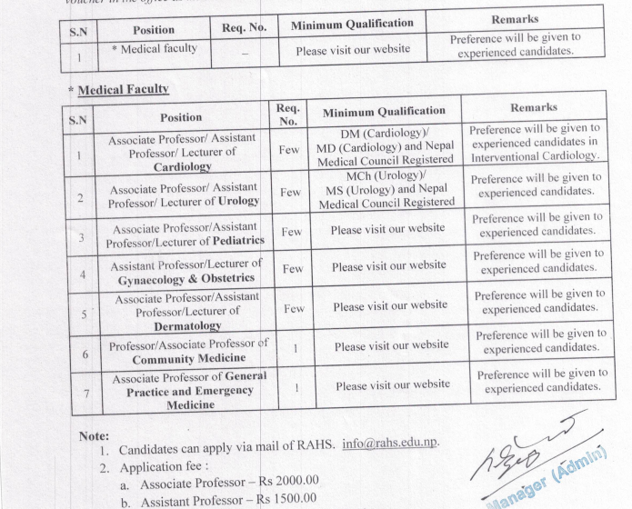 Rapti Academy of Health Sciences (RAHS) Vacancy for Medical Faculty