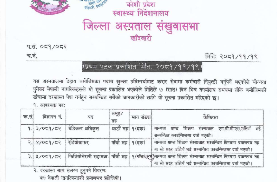 संखुवसभा जिल्ला अस्पतालमा कर्मचारी आवश्यकता सम्बन्धी सूचना