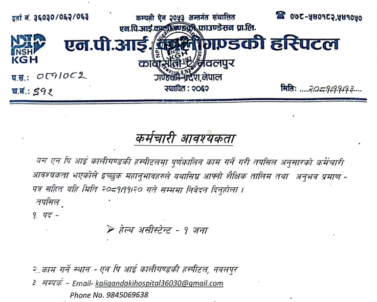 Vacancy Announcement at NPI Kaligandaki Hospital