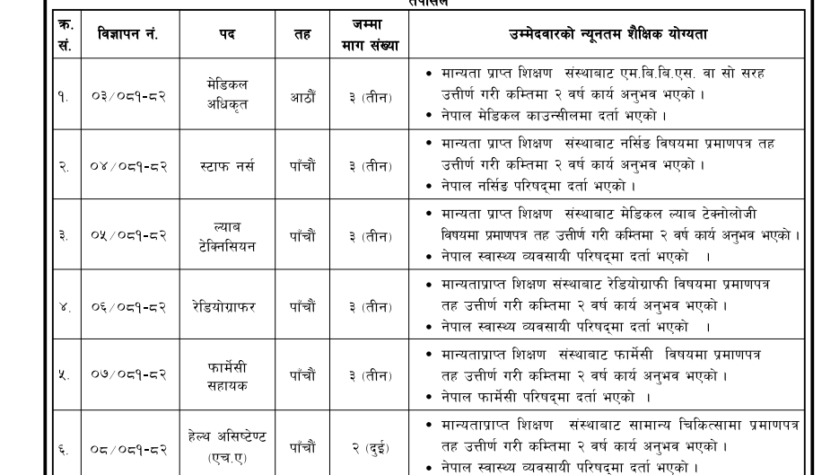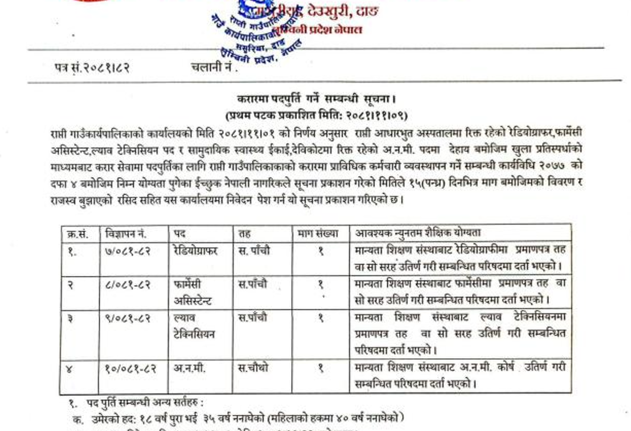 राप्ती गाउँपालिका दाङमा स्वास्थ्यकर्मी आवश्यकता सम्बन्धी सूचना