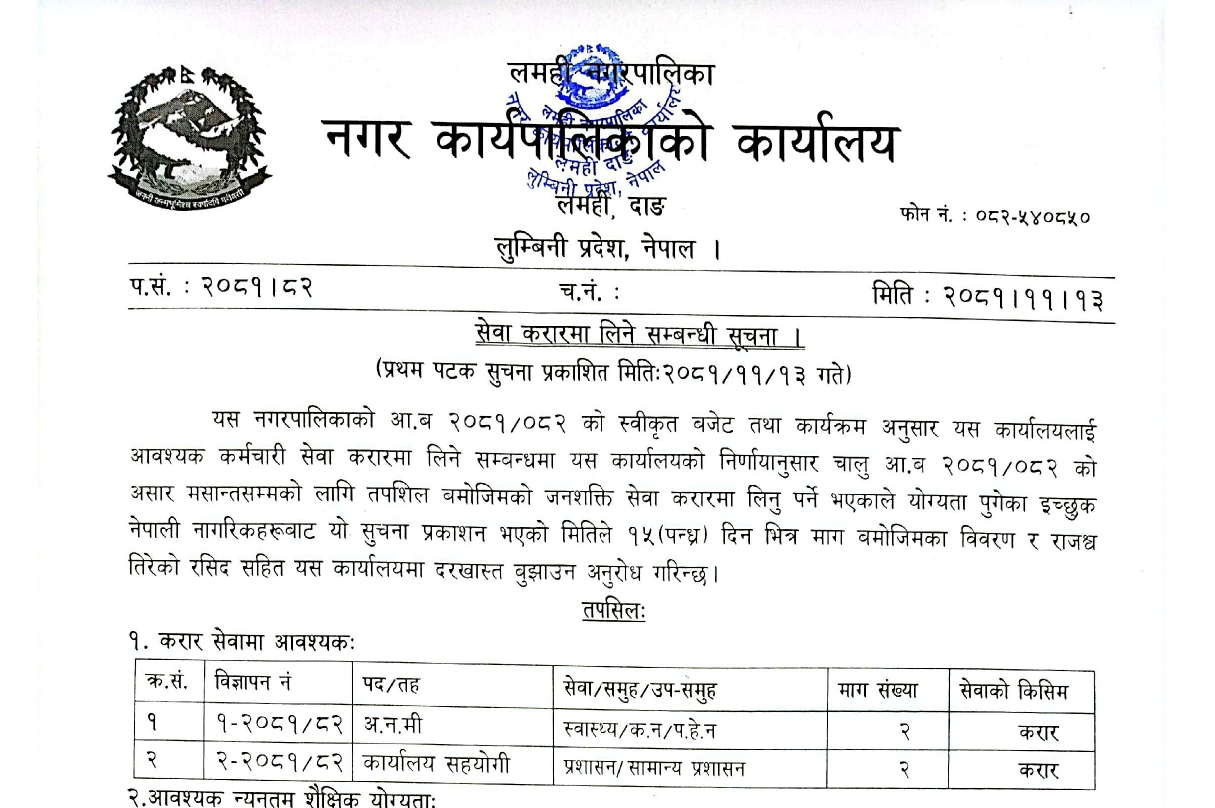 लमही नगरपालिकामा कर्मचारी आवश्यकता