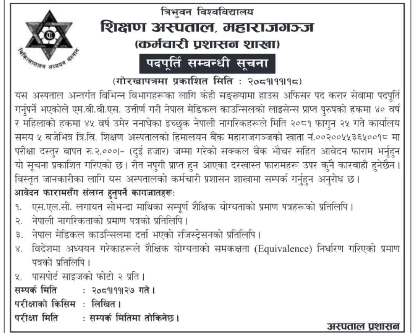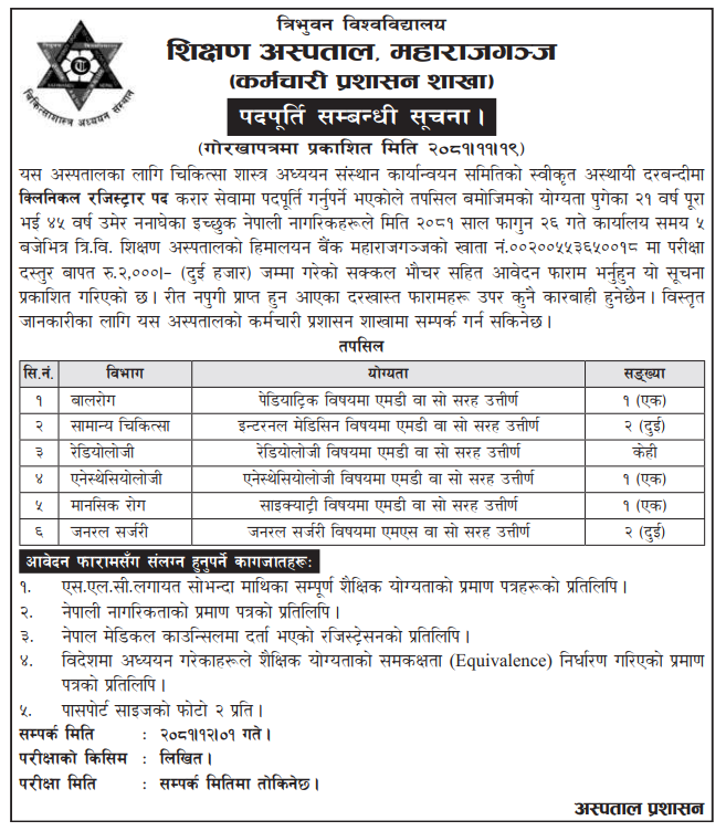 मदन भण्डारी अस्पताल तथा ट्रमा सेन्टरमा कर्मचारी आवश्यकता सम्बन्धी सूचना