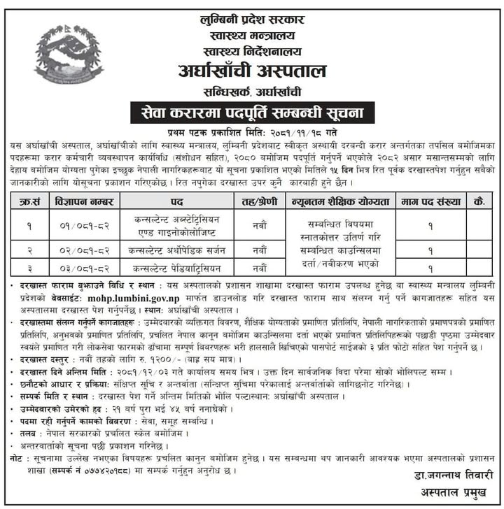 अर्घाखाँची अस्पतालमा चिकित्सक आवश्यकता सम्बन्धी सूचना