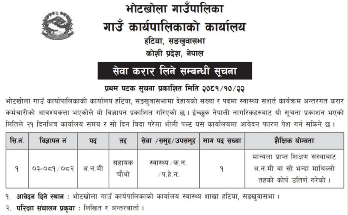 भोटेखोला गाउँपालिकामा अ.न.मी. आवश्यकता सम्बन्धी सूचना