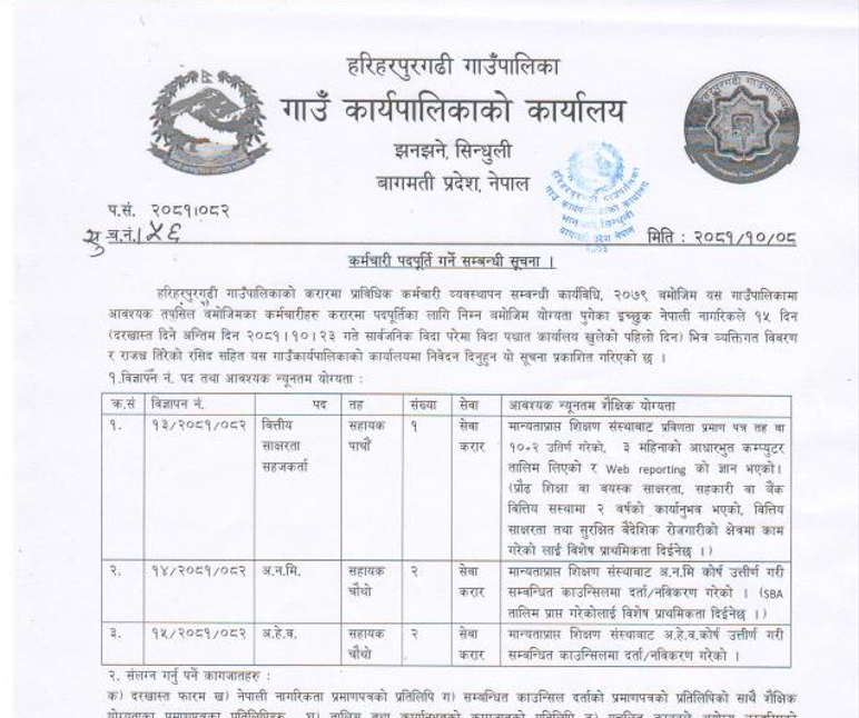 बराहताल गाउँपालिका सुर्खेतमा कर्मचारी आवश्यकता सम्बन्धी सूचना