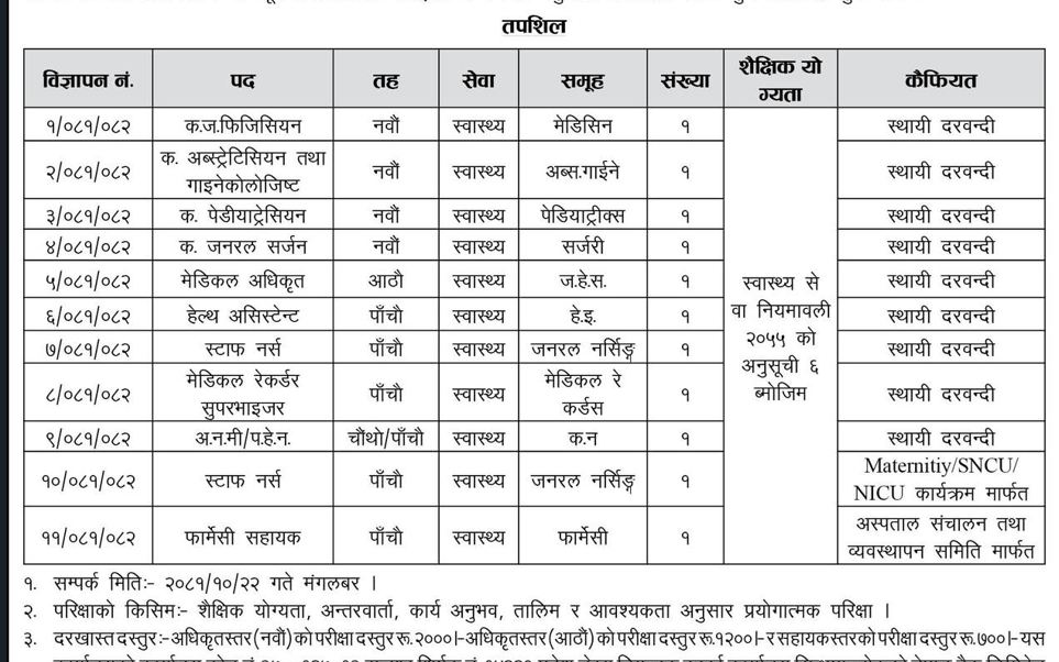 शिक्षण अस्पताल, महाराजगञ्जको पदपूर्ति सम्बन्धी सूचना
