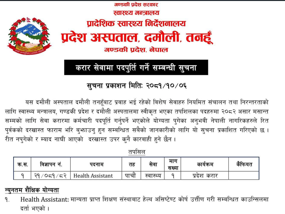 प्रदेश अस्पताल दमौलीमा कर्मचारी आवश्यकता सम्बन्धी सूचना