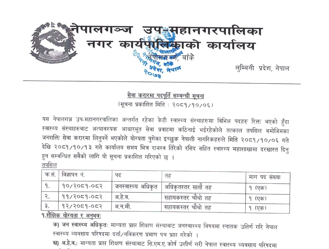 नेपालगञ्ज उप–महानगरपालिकामा कर्मचारी आवश्यकता सम्बन्धी सूचना
